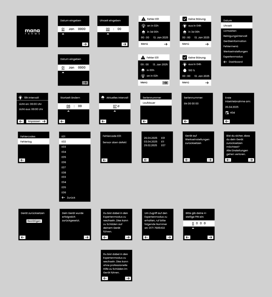 With the release of the Mana Cube at the end of 2025, the OLED interface became the central control layer of the productenabling users to configure and manage their vertical farming system directly on the device.